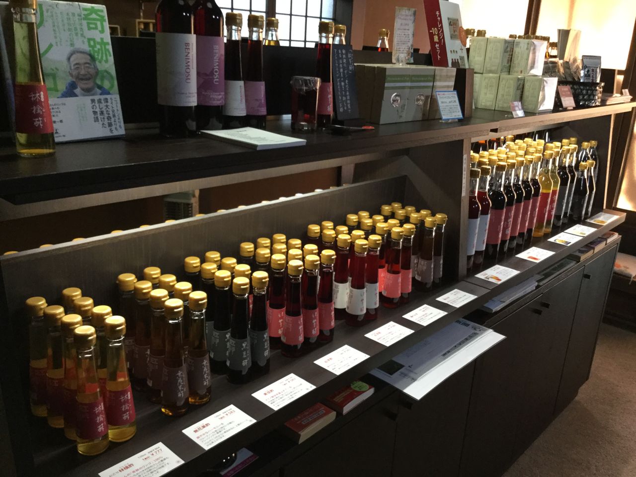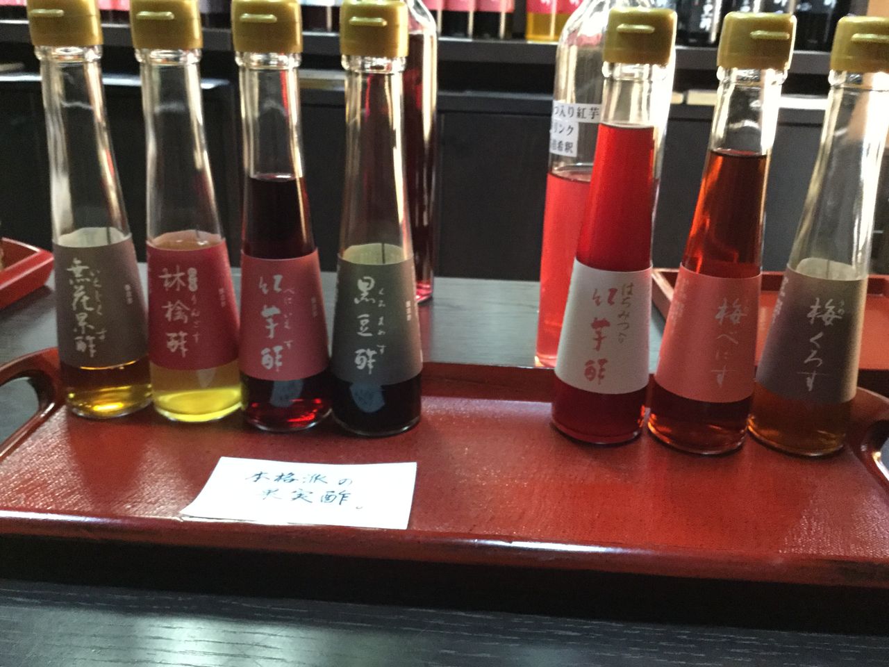 中に入ってみると、普通の御酢からりんご酢、いちじく酢など変わったものまであります。