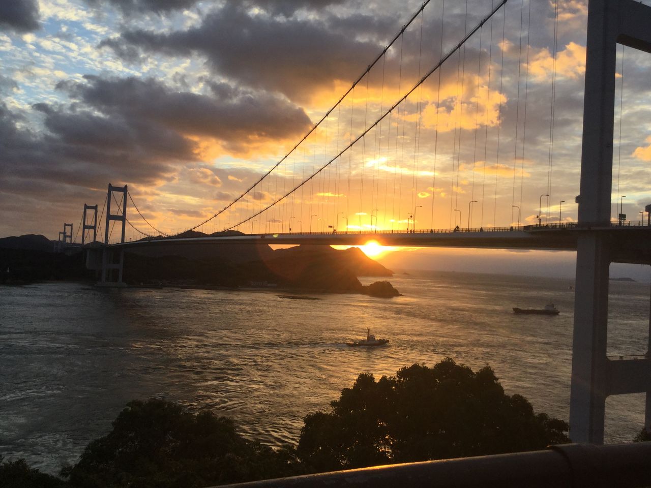 愛媛と広島をつなぐ、しまなみ海道の橋の一つ、来島海峡大橋です。