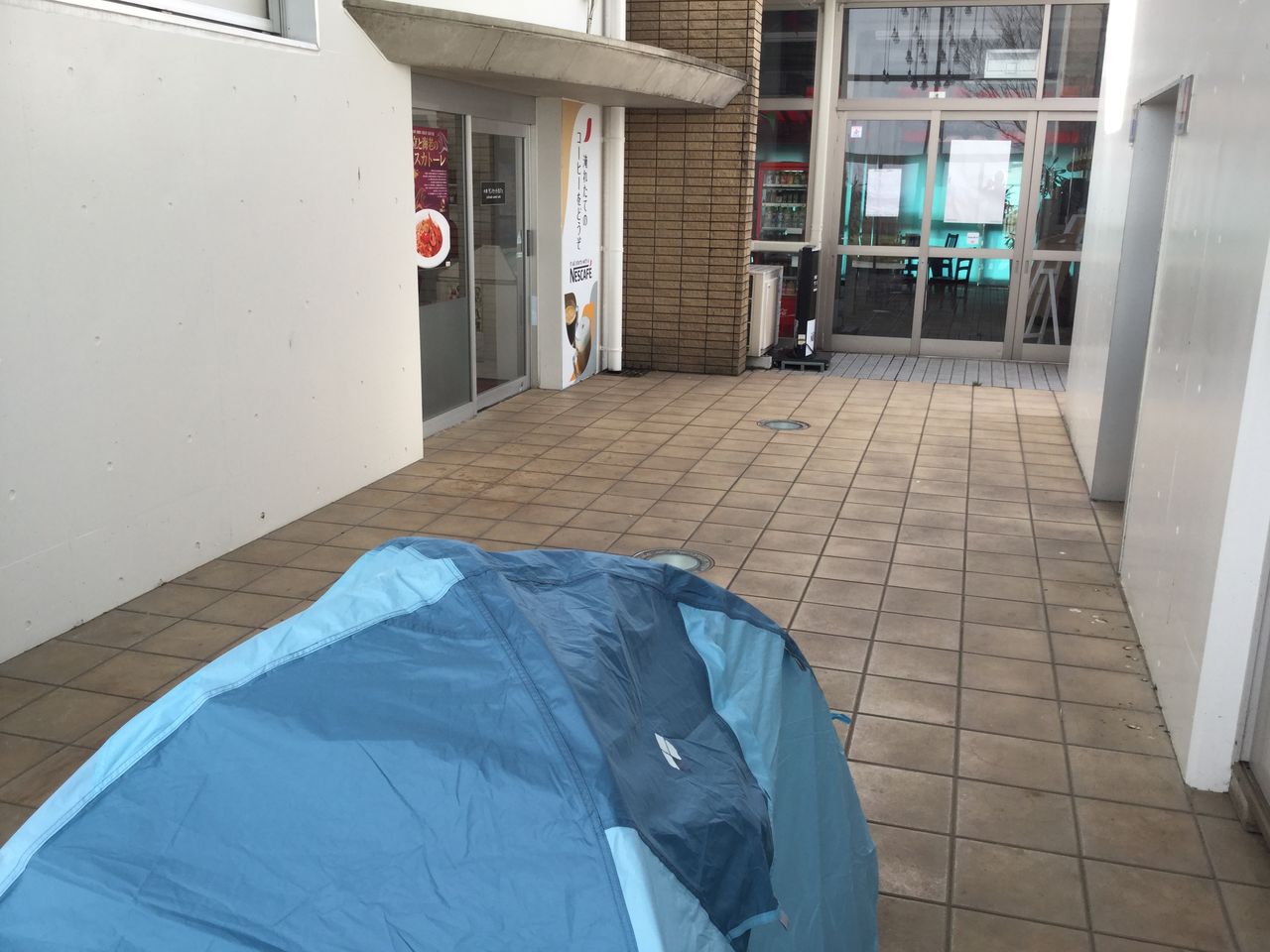 昨日は駅長さんのご厚意により、トイレの奥の屋根があって、風が吹き込みにくいところにテントを張らせてもらったんですよね。