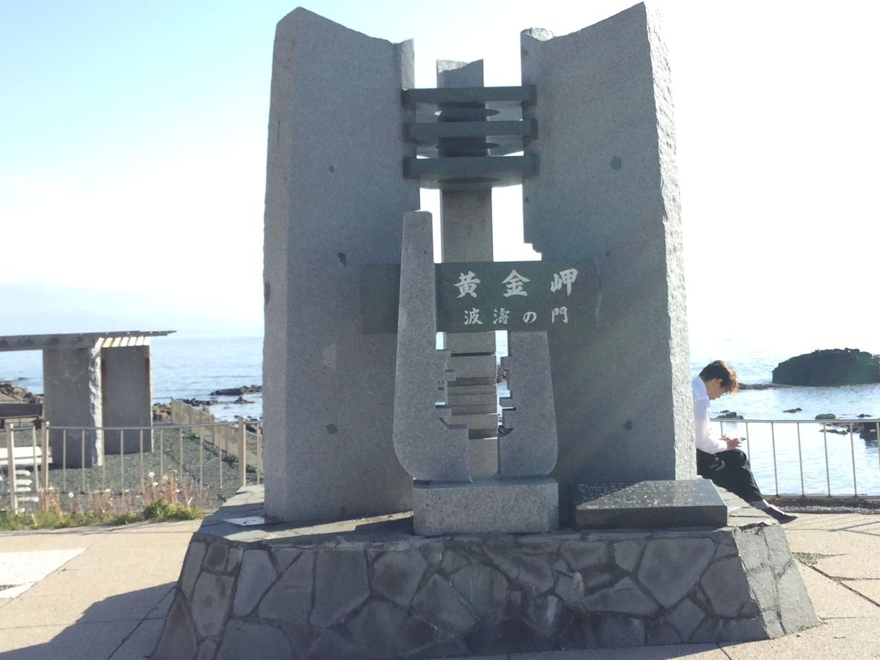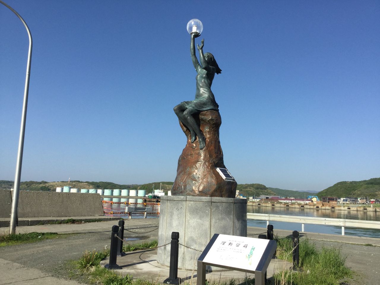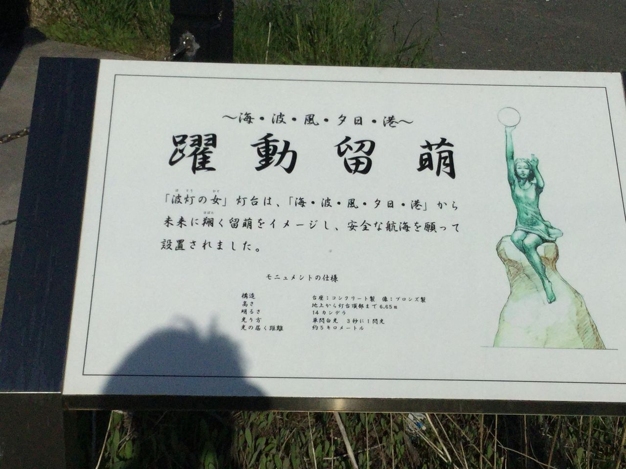 黄金岬に近づくと「波灯の女」というデザイン灯台があるので、先にそっちに行ってみます。