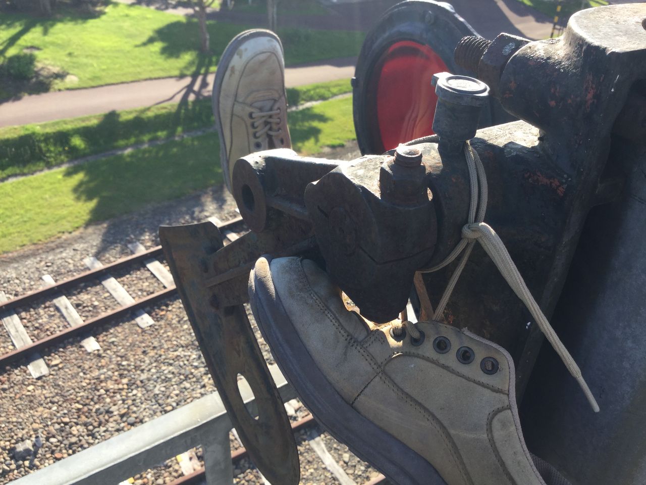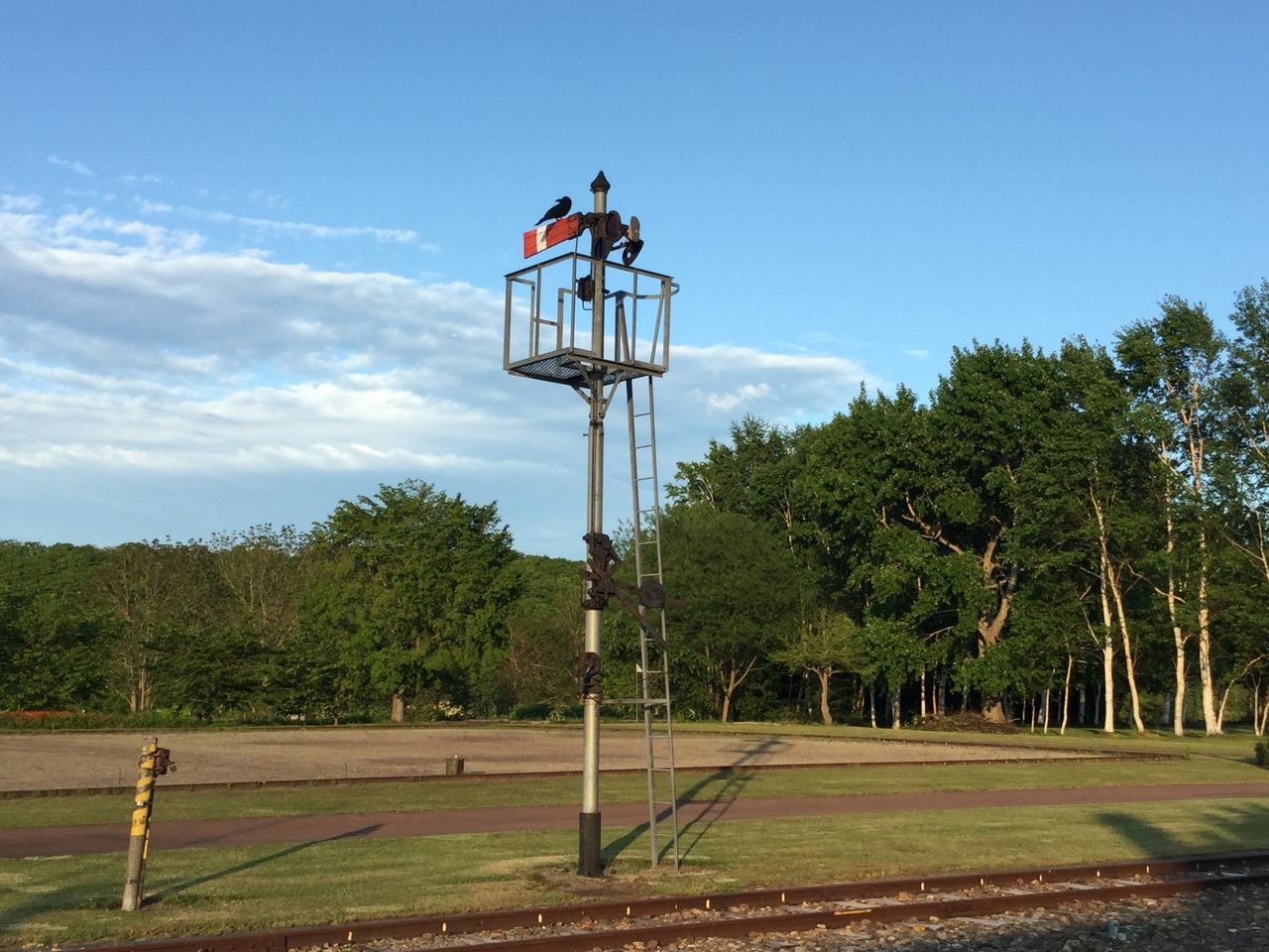 駅長室の前にあった信号?みたいなやつに登ってみました。