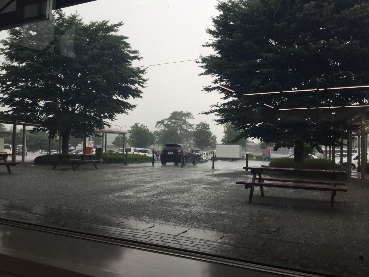 ソフトクリームを食べていると、急に大雨に。よかった〜