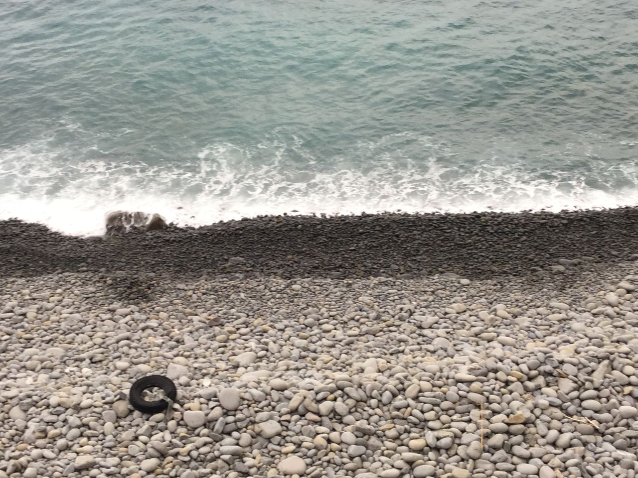 砂じゃなくて石なので、波が引く時に鳴る「ゴロゴロゴロ!」っていう音がすごい!